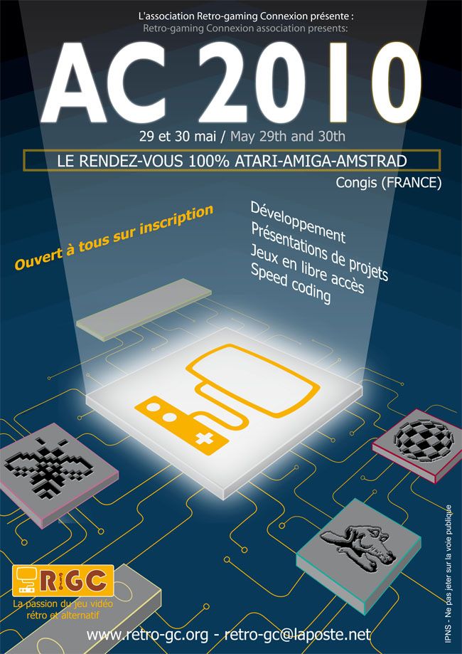 -The meeting AC2010 meeting will take place the 29th and 30th May 2010 at "la salle des fêtes" in Congis (77, France). The meeting is about Amiga and Amstrad computers.